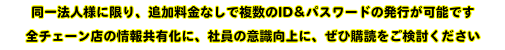 ご入会時に、IDとパスワードを発行します(IDは閲覧者のメールアドレスとなります)。社内での情報共有等、大変喜ばれております。入会時にぜひご一報ください。